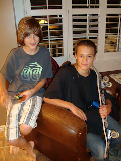 Morgen and his friend Alex stayed up the entire night last night. Alex came over to spend the night for Morgen's birthday and they have been outside skate boarding and I took them out to practice their driving skills as well. I took Morgen out to get his permit yesterday and he passed the test with flying colors in only ten minutes. He hardly even looked at the driver's handbook before hand. Just walked in and passed the written test like that. He is getting better at driving too. After he had his permit in hand yesterday, I let him drive from the DMV over to Ikea, since I needed to pick up some frames. It took him 5 minutes to back out of the parking space since the parking lot was rather crowded, and every time he went to go, another car would be coming in his direction. Then he pulled out on to the frontage road and a truck pulled out behind us and started honking at him for going too slow. Then he sped up but I was telling him to slow down since the corner was coming up and he hadn't practiced turning yet. Once we got around the corner I had him signal to pull over and stop so that I could drive us over the freeway (and around all the traffic) and he just stopped in the middle of the road instead. I think I will take him over to the high school parking lot again to practice before I let him out on the road for a while though. They still haven't gone to sleep yet, but I am sure when they do it will be for a long time. Crazy teenagers!